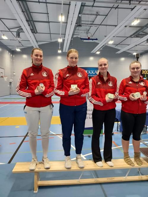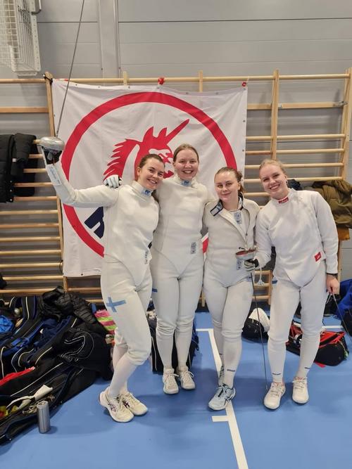 Lisäksi Habdan naisille SM-joukkuehopea tiukan taiston päätteeksi. Joukkueessa miekkailivat Anna, Sara, Inka ja Viena.